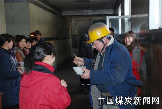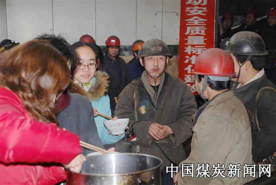 本网讯:山东新陶阳公司团委元宵节前夕,深入井口为即将下井的一线员工送上了一碗碗香甜的元宵,祝愿他们在井下坚持正规操作、按章作业,实现自我安全,家庭团圆幸福。图为:团员青年为一线员工送元宵的场景。