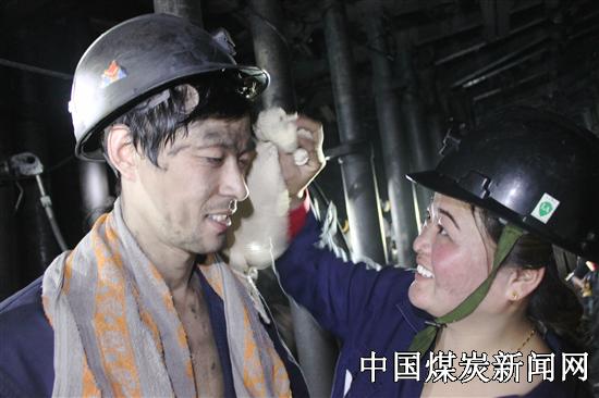 为进一步促进职工家庭和企业大家庭的平安和睦。元宵节当天,该矿工会积极组织职工家属和文艺小分队前往采煤工作面,为元宵节依然坚守在工作岗位上的干部职工送去了慰问品和佳节祝福。 在工作面,与刘影一样,不少职工家属含着眼泪主动上前为自己的丈夫擦汗、送水,妻子所表现出来的体贴也着实让他们感到安全的重要和团圆的珍贵。 图为:孙影为丈夫擦拭汗水。 ![]()