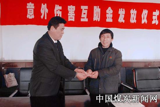 本网讯 2月18日,安徽淮北矿业朱仙庄矿工会工作人员正在向遭遇意外伤害的职工发放意外伤害互助保障金。该矿工会积极组织在职职工参加意外伤害互助保障计划,切实减轻职工因意外伤害造成的的经济负担。2010年以来,共有15名职工得到救助,救助金额45420元。