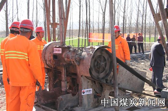 3月10日,国土资源系统河南省煤田地质局HNGT—602号钻机在河南省济源市克井镇康村开始正式开钻,这标志着由该局负责对口支援的济源市抗旱找水打井工作进入全面实施阶段。图为施工人员正在抓紧时间钻进。