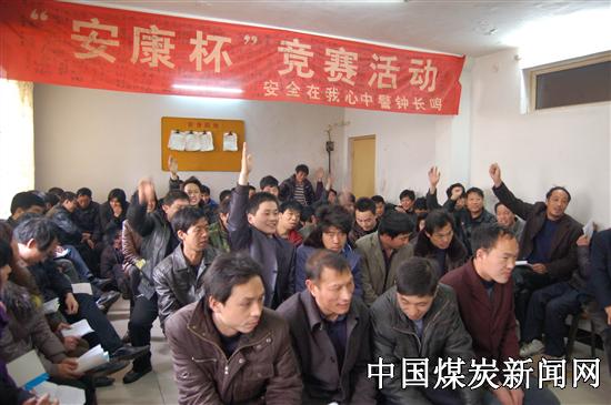 瑞平公司张村矿扎实开展安全质量标准化工作,通过各种形式,增强员工安全意识,提高质量标准化工作水平,图为3月24日,该矿皮带队举办的“安康杯”安全质量标准化知识竞赛现场,参赛员工答题踊跃。
