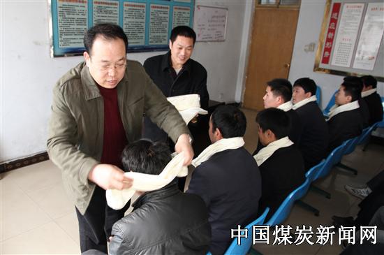本网讯 3月24日下午,葛店矿区队楼内锣鼓喧天,矿党委副书记赵睿带领工会慰问人员先后来到三队、掘三队、开五队等单位,为在大干“三四五六”劳动竞赛中创佳绩的区队送去了毛巾、香皂、牙膏等慰问品及贺信。
