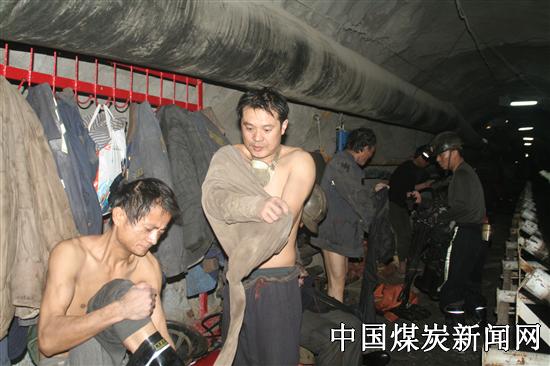 ![]() 图2为:职工在水中坚持工作 图3为:衣服淋湿员工们脱掉工作服,头顶矿灯,将要奋战在工作面