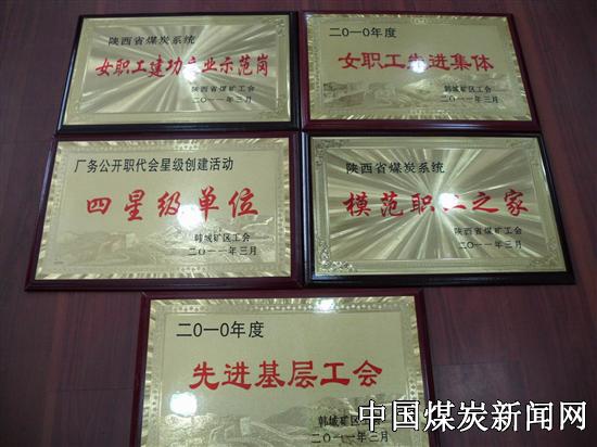 本网讯 陕煤韩城矿业公司下峪口煤矿工会认真实施 “一个中心、两个重点、三项建设、四项活动” 工作规划,推进了工会工作创新发展,富有成效。日前,该矿工会捧回陕西省煤矿工会2010年度“模范职工之家”、“ 女职工建功立业示范岗”, 矿区工会2010年度“厂务公开职代会四星级单位”、“ 先进基层工会” 及“女职工先进集体” 五项奖牌。