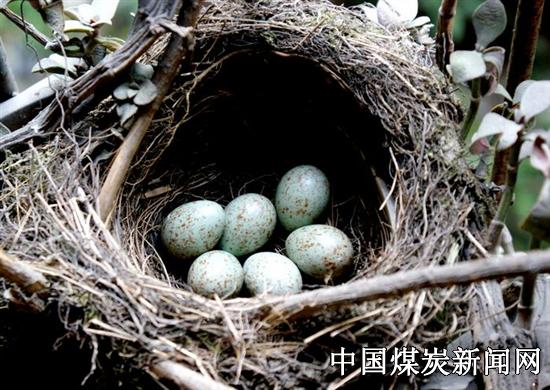 本网讯 川煤集团达竹公司斌郎煤矿冉兴华的家,这几天人流不断。上个月,一对全身黑色的红嘴八哥在他家五楼阳台上一花盆里筑巢,现已产蛋6只,鸟爸爸、鸟妈妈夜以继日地孵化小鸟,那情景十分有趣,一时在矿区传为美谈,人们都说这都是该矿重视环保绿化的结果。据了解,该矿经过十多年的大面积的植树造林,在矿区内种植水杉、香樟、女贞、广玉兰等树木花卉500多种,全矿已绿化面积占可绿化面积的98.83%,在矿区栖息的鸟类达40多种,常见的有红嘴八哥、金翅、山雀、绣眼、画眉、白头翁、翠鸟、云雀、喜鹊、凤头百灵等。图为红嘴八哥产下的蛋。