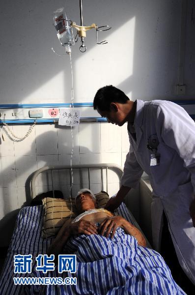 4月27日,一名受伤人员在石龙区第一人民医院接受治疗。新华社记者朱祥摄
