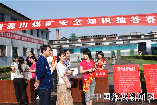 周源山煤矿为了安全生产,2011年5月18日早班,由工会、女工委、政工部、培训中心联合举办安全知识抽奖寨,吸引早班进班人员参与。同时,矿社区送温暖保平安服务队来到班前广场,为井下职工缝补衣服,送早餐。