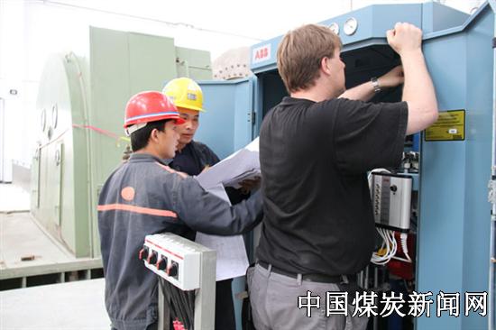 【本网讯】 安徽皖北煤电集团朱集西煤矿青年员工在该矿各单位努力创建学习型班组浓厚氛围的强烈感染下,充分把握工作中有力的学习机会,不断提升自身综合技能素质。图为朱集西煤矿机运事业部青年技术员在该矿副井提升系统调试中向ABB瑞典总部工程师学习设备调试技术。
