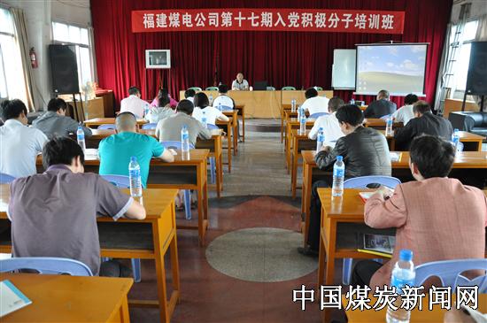 本网讯 为了迎接建党90周年,进一步加强党组织建设,自5月26日起,福建煤电公司在翠屏山煤矿举办了为期一周的第十七期入党积极分子培训班,共有龙岩片区入党积极分子学员31人参加。培训的主要内容有中国共产党新《党章》、《中国共产党党史》,以及如何《争取做一个合格的共产党》等,届时将对他们进行统一考试。图为该公司入党积极分子在认真听课的现场。
