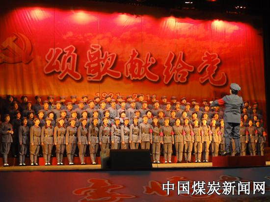 湖南省煤业集团公司党委开展“颂歌献给伟大的党”红歌演唱迎接党的90华诞。图为:资兴矿区红歌演唱会 .