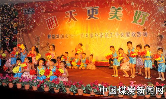5月28日下午,河南煤化鹤煤集团庆“六一”联欢活动在鹤煤宾馆西四楼会议室举行。小朋友们表演了精彩的文艺节目,外派员工子女和他们的妈妈登台进行了亲子互动游戏。鹤煤公司还对所有六年级以下外派员工子女赠送了《少年百科全书》。图为联欢会现场。