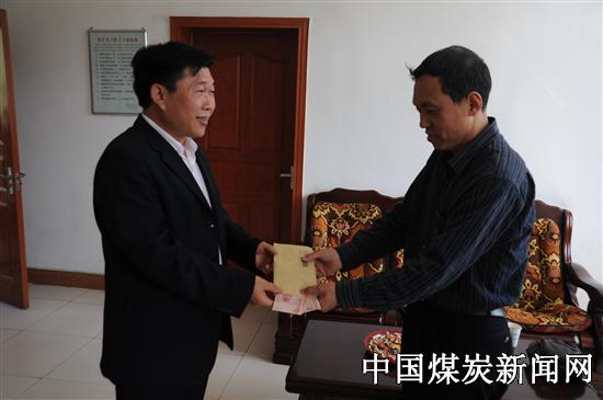 5月4日这天上午,这名教师的爱人为了感谢这位好心人,乘车来矿为市劳动模范康红牛送来了牌匾,向他表示衷心的感谢。 ![]() ![]()