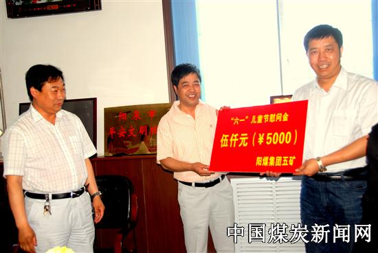 本网讯 为庆祝“六一”国际儿童节, 5月31日,阳煤集团五矿党委委员、纪委书记史冬瑞带着矿党政工领导的深情厚谊,带着对少年儿童的亲切关怀和祝愿,对驻地桥头小学进行慰问,送去了5000元的慰问金。