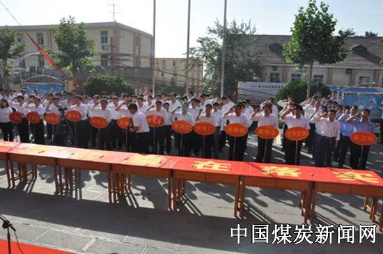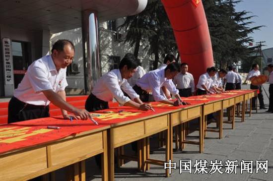 该矿党委副书记彭忠同志主持仪式,矿长丁其全做了全矿动员讲话,副矿长程同印率队集体宣誓。二采区支部书记张芳代表回采战线全体干群表态发言,开拓区支部书记张志斌代表开掘战线全体干群表态发言,副总吴用祥代表机电战线干群表态发言。仪式上,矿党政班子成员带头在安全长幅上签字,之后干群依次签字承诺安全。