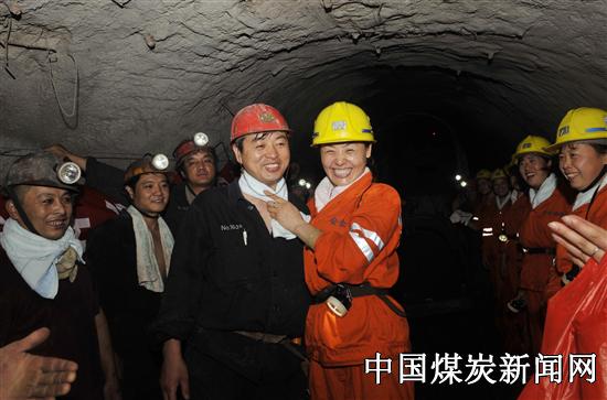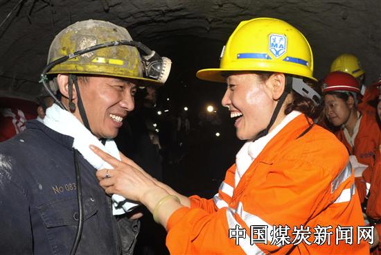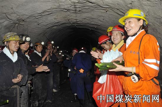 本网讯 2011年6月23日是安徽皖北煤电刘桥一矿实现安全生产1000天的日子。当天,部分矿嫂带着礼物,来到丈夫井下工作的地方,慰问这些矿山安全生产的功臣们,在八百米井下演绎了一幕幕感人的“鹊桥会”。