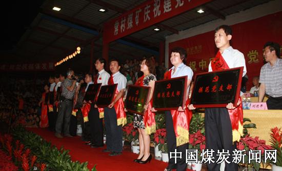 6月28日晚,为纪念中国共产党建党90周年,山西潞安集团常村煤矿在矿灯光球场举办了庆“七一” 爱党、爱国 、爱矿山红歌大合唱暨创先争优活动表彰大会。这是该矿继组织党员到革命老区接受教育、举办党史知识讲座,重温入党誓言、开展党史朗诵比赛、书画摄影展览、批评与自我批评组织生活会,观看党史影像资料宣传片等之后的又一次大型活动,把纪念建党90周年系列活动推向了新的高潮。 大会以一曲“没有共产党,就没有新中国”大合唱,拉开了晚会序幕,接着表彰了模范党支部10个、先进党支部15个、先进党小组60个,时代先锋10名、优秀党员干部20名、优秀党员193名及反腐倡廉先进个人61名等。