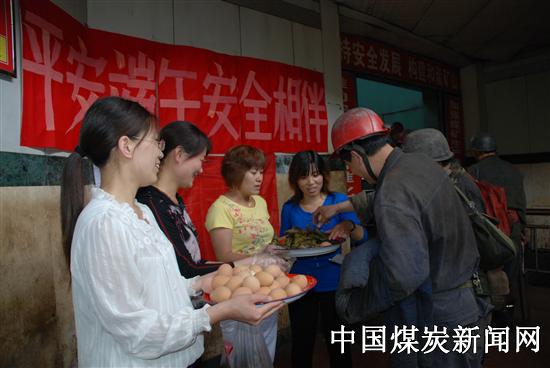 在全国第六个安全生产月活动中,山东新陶阳公司女工安全协管员们,利用传统节日端午节这一有利时机,带着糯米粽子和鸡蛋来到井口,向上下井的一线员工祝贺节日,为六月安全生产加油鼓劲,女工安全协管员的的祝福。也感动着一线员工。