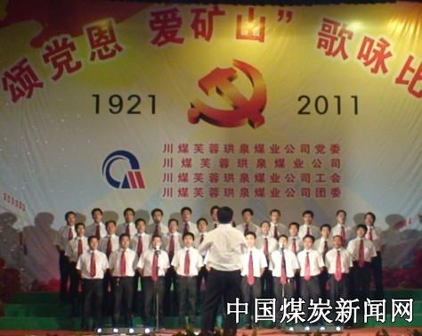 6月28日19:30时许,芙蓉珙泉煤业职工俱乐部广场彩旗飘扬,欢快的曲子回荡耳畔,衣着光鲜的人们脸上洋溢着春风般的笑,原来,为庆祝中国共产党建党九十周年,该公司将在20:00举行“颂党恩 爱矿山”歌咏比赛。