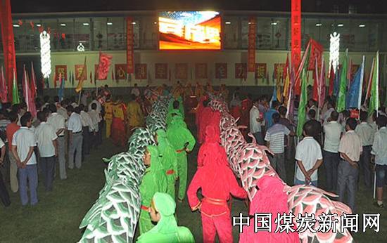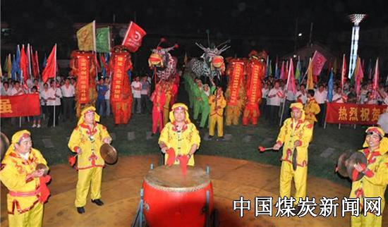 寂静的会场一片沸腾:干群们有的一跃而起振臂高呼、有的逐一握手同庆共贺、有的心潮澎湃感慨不已。 场外,“期盼”已久的鼓乐手、司炮手立即行动,顿时锣鼓喧天、鞭炮齐鸣、礼花四射,整个矿区变成了欢乐地海洋。 陶二矿工会组织的30名花会队员进行了“双龙际会庆辉煌”、“群狮狂舞迎胜利”等主题表演,让整个矿山的干群度过了一个无眠之夜。 ![]()