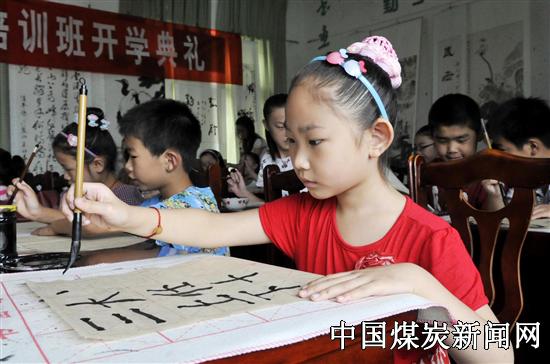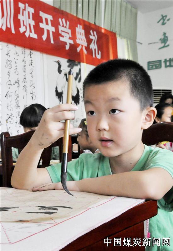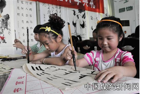 日前,安徽皖北煤电刘桥一矿暑期少儿书画班的孩子们正在习练书法。针对矿区儿童暑期生活枯燥、离市区远、学习书画比较困难的实际,矿上今年免费开设了少儿书画班。此举既满足了矿区少儿学习中国传统文化的需求,又解除了职工们无暇照顾放假在家孩子的后顾之忧。