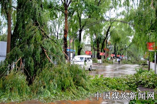 本网讯 7月24日下午3点20分,一场突如其来的狂风暴雨袭击山西阳泉贵石沟矿区,座落在阳泉贵石沟矿区的阳煤集团五矿受到狂风暴雨的影响,五矿大井文化广场数余颗大柳树“折腰断腿”,严重威胁职工群众的安全出行,造成车辆堵塞。阳煤集团五矿积极组织抢险救灾,为职工群众排除自然灾害带来的安全隐患。