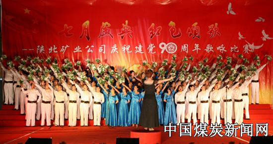 90年惊涛骇浪,铁锤锻打出中华民族的坚强脊梁;90年开拓创新,镰刀收割着华夏儿女的盛世欢腾。7月1日下午,陕北矿业公司在韩家湾煤炭公司举办“七月盛典,红色颂歌”歌咏比赛,隆重庆祝建党90周年。来自各基层单位的8支合唱队500多名干部职工参加了歌咏比赛;公司领导,优秀党员代表和广大干部职工观看了比赛。