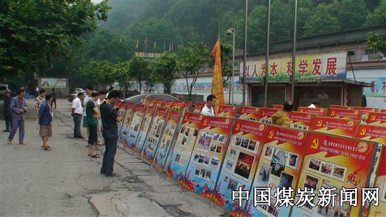 为庆祝中国共产党建党90周年,7月4日,由川煤芙蓉公司党委组织的“见证发展,共创未来”图片展在芙蓉珙泉煤业公司办公大楼前隆重开展。