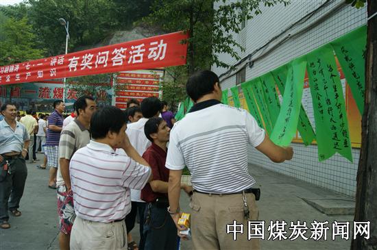 本网讯:“三专两闭销的是?”“自制放炮属几类违章?” 8月12日上午,刚参加完周五政治学习的1000余职工赶到矿井口抢答安全题。 为深入学习胡锦涛同志七一讲话,巩固职工安全知识,提高职工安全生产意识,全方位构筑安全生产防范网络,鲁班山北矿党、政、工、团联合组织了学习胡锦涛七一讲话、安全知识有奖知识问答活动,将胡锦涛七一讲话要点、安全知识、操作规程等制作成200道抢答题。 “三个代表指的是?”“四项基本原则的内容”、“一炮三检指的是?”……一道看似难度比较大的题目,也被矿工们一一抢答。 主办方为参加答题的职工准备了洗洁精、洗衣粉、牙 、香皂、洗发水等共计600余份丰厚的礼品,很快被矿工们精准的答案一“抢”而光。 鲁班山北矿是四川省最大煤田筠连矿区开发的第一对大中型矿井,核定年生产能力90万吨,现在职工近1700人。今年以来,鲁班山北矿突出抓好安全工作,坚持从提高生产一线员工的安全知识、操作技能的教育培训入手,通过定期集中培训、短期分散培训,以及周二、周五安全知识教育等形式,还开展形式多样的安全教育活动,极大地提高了职工的安全意识,今年上半年,受伤事故比去年同期减少45.59%,安全生产周期不断延长,涌现了安全生产周期长达1700余天的的全国优秀安全生产班组。
