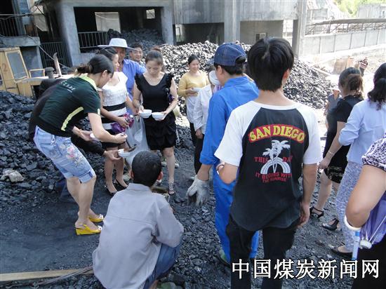 8月16日,鲁班山北矿机关工作人员顶着烈日酷暑,给在高温酷暑依然坚守岗位职工们送去了冰镇绿豆汤。
