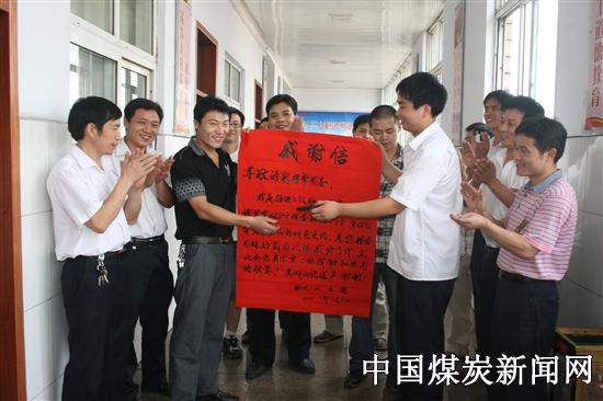 ![]() 近日,郑煤集团告成矿掘进二队职工王巍在队长、支部书记的陪同下将一封大红感谢信送到探注队职工郭福常手中。
