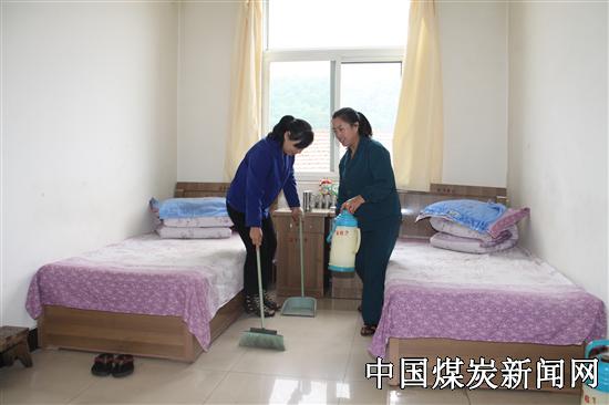 ![]() 鸭口煤矿有限责任公司物业科职工公寓楼(51栋楼)现有服务员8名,负责4层楼的120个房间330余人的入住问题,他们主要管这些楼的环境卫生、治安保卫、消防管理、床铺整理、被罩单子洗涤、后勤服务等工作。