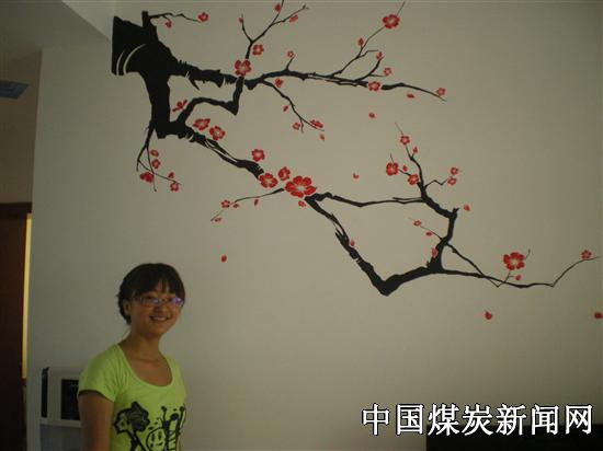 在另一家,罗茜用铅笔画的图案也基本呈现,自7月12日放暑假回家以来,罗茜先是在父亲的新屋的电视机背景墙上画上梅花图案,由于画得好招来了红枫小区不少正在装修的安居房居民,仅仅十几天,罗茜就接到了6单生意,收入近三千元。从去年11月份起街洞公司有629户居民在红枫小区购置了安居房,当然也包括罗茜父母,60平米的房屋装修较为精制,再加上罗茜手绘装的梅花图案等,给新房增色不少。