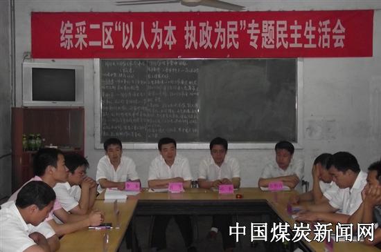 8月19日上午9点,安徽淮北桃园矿综采二区会议室里座无虚席,该区“以人为本执政为民”专题民主生活会正在进行,会议由党支部书记李东主持,采煤副总曹苏和财务科长张明涛到会指导。