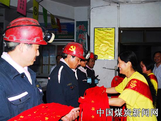 8月24日上午,安徽淮北矿业临涣煤矿20多名协安员分别到18个采煤区队班前会,为井下一线职工送去了协安员们一针一线绣出的4000条带有“吉祥平安”字样的红腰带,并把祝福的话语,叮咛的嘱托一并送到职工的身边,祝下井矿工平安吉祥。
