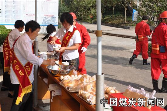 近年来,四川煤炭产业集团达竹公司小河嘴煤矿工会坚持常年开展“亲情送温暖、安全到一线”活动,女工协管员们通过安全帮教、井口送温暖、送安全知识进区队等活动形式,用朴实的语言,真实的感情积极宣传安全知识,密织安全防护网,为一线职工带去丝丝温暖和温馨的祝福,用亲情和关爱筑牢安全生产的第二道防线,撑起安全生产“半边天”。图为该矿女工协管员正在井口服务站开展送温暖活动。