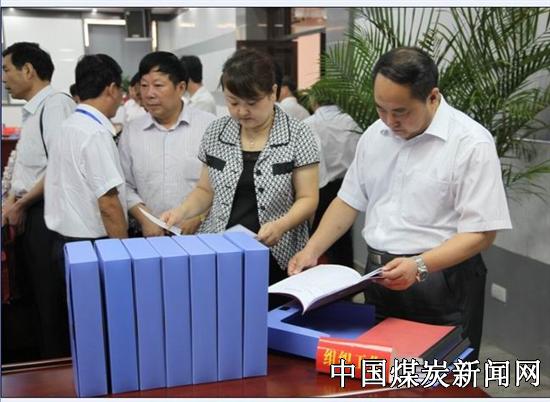 ![]() 建设集团公司领导乔建华、杨永红翻阅韩城公司党群基础资料