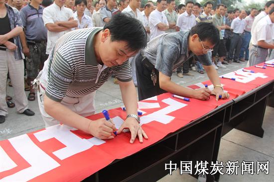 ![]() 会后,全矿1000余名职工,在各单位负责人的带领下,陆续秩序排队签名。
