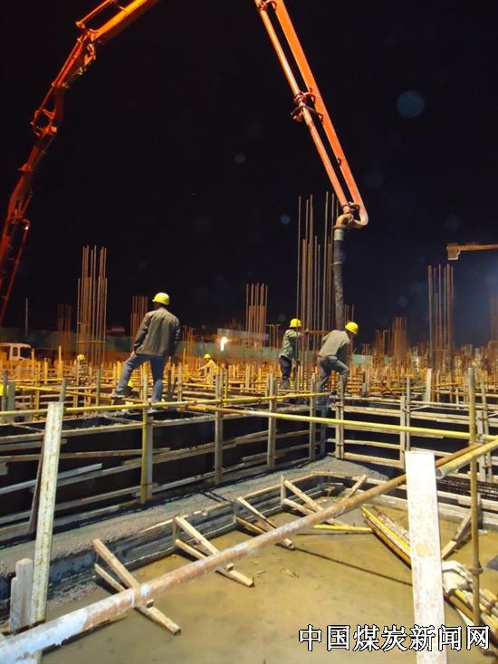 山阳煤矿浴室灯房、区队办公及联合建筑建筑面积12258㎡,共计三层,属框架结构。自工程开工以来,澄合公司第一项目部全体管理人员以创建省级文明工地和样板工程为目标,克服各种不利因素,狠抓工程进度和工程质量,经过一天两夜昼夜奋战,浇筑混凝土920余立方,于近日顺利完成条形基础浇筑任务,为下一步工程的顺利施工创造了良好条件。图为昼夜施工的场景。(同先丽、何炳玉)
