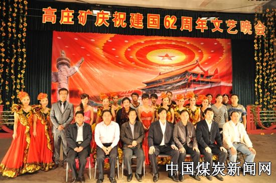 为丰富职工文化生活,9月30日,中国平煤神马集团高庄矿实业公司举行国庆文艺晚会,矿党委书记董光德、董事长、总经理李全河、党委副书记郭百堂、副总经理曹跃生、总工程师李文广、副总经理杨永峰、张修坤观看演出。广大职工用演出的方式喜庆建国62周年。