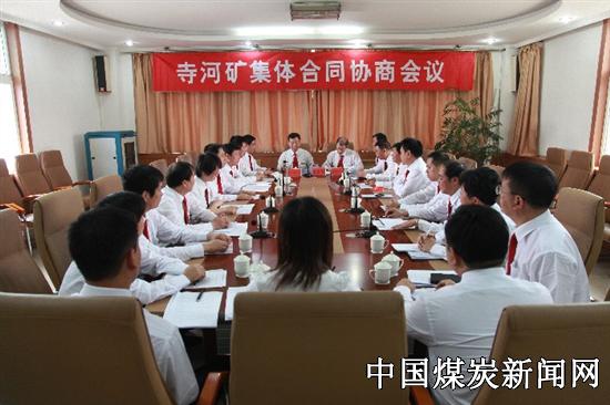 9月6日,寺河矿召开集体合同平等协商会议,行政方代表与职工方代表本着平等协商的原则,就劳动报酬、工作时间、休息、休假、保险福利等方面进行了协商。集体合同为职工维权构筑了科学的防火墙,为构建矿井和谐稳定劳动关系起到积极作用。图为该矿集体合同协商会议现场。(秦宏斌摄)