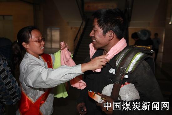 寺河矿女工协管开展“喜迎中秋佳节、温暖送一线”活动,为奋战在一线生产岗位的职工送上香甜可口的月饼、苹果、平安节等慰问品,嘱咐工友师傅遵章守纪保安全,祝福矿工兄弟幸福平安、合家团圆。(秦宏斌摄)