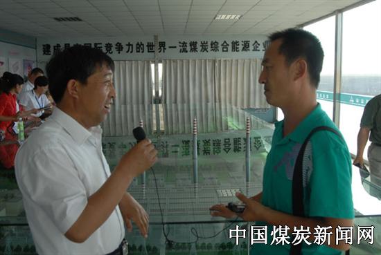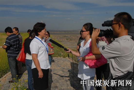 在深入装车站、煤炭运输系统、南排土场、观礼台现场拍摄、观看、听取情况介绍后,记者团集体采访了总经理刘明。刘明总经理向记者团介绍了胜利能源公司积极贯彻落实自治区、锡盟、锡林浩特市整顿和规范矿产资源开发秩序以来所采取的措施和所取得的成效。