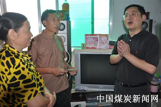 出井后,任兴文一行来到井口矿嫂爱心服务站,女工家属组织的送温暖活动引起了任兴文一行的兴趣,可口的西瓜、冰沁的凉虾……散发出浓浓的芳香,任兴文品尝了西瓜、凉虾后,对随行人员说:“这个活动好,很人性化。” 随后,任兴文一行来到小河嘴煤矿家属区,走访慰问了该矿供应科贫困职工范开成、通风队贫困职工石含康两家。在范开成家,任兴文与范开成夫妻亲切握手,亲手送上了慰问金和慰问品,并和他们拉起了家常,详细了解了范开成一家的生活和子女教育情况。得知范开成因井下受伤收入不高、老婆常年生病、两个孩子在企业帮助下先后读上大学的情况时,任兴文连声表示:“这很不容易,祝你们早日过上好日子。”