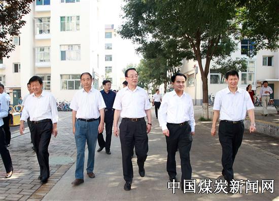 ![]() 图为杨安和(中)在集团、矿领导的陪同下视察南海小区