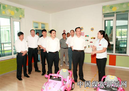 ![]() 图为杨安和(右二)在该矿幼儿园听取园长作超前教育介绍