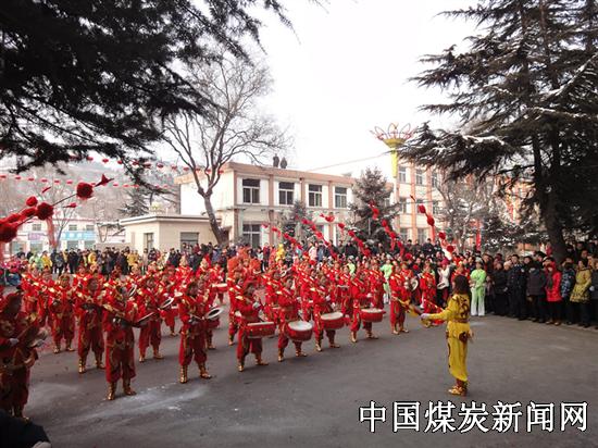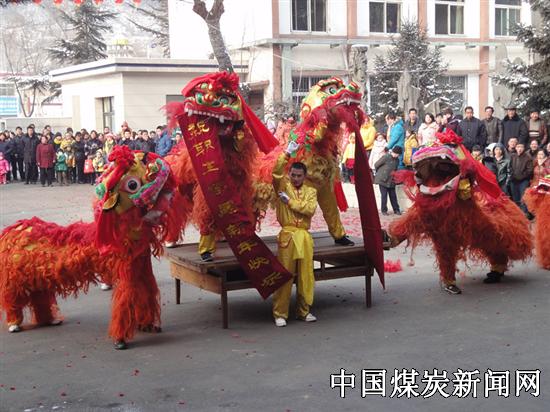 【本网讯】 时值大年初一,一场小雪过后的铜川陈家山矿区虽然滴水成冰,哈气成霜,气温急剧下降,然而,伴随着欢天喜地的锣鼓和高昂优雅的唢呐声,陕北秧歌、黄河腰鼓、关中行鼓和富有地方特色的扇子舞在这里表演的精彩之极,还有威武的狮子队也在这里翻舞、逗情、嬉戏趣闹的淋漓尽致,它们都尽情地在为全矿职工、家属大拜年赢得职工家属声声赞叹。