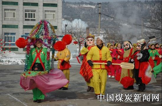 ![]() ![]() 图3 矿机关大楼前喜气洋洋的秧歌锣鼓 ![]()