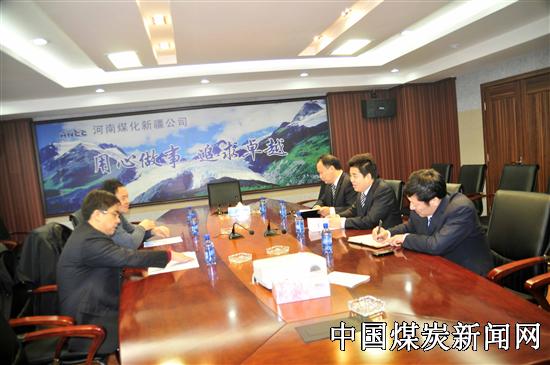 在交谈中,张清鹏介绍了河南煤化新疆公司的基本情况、2011年大项目、基本项目建设情况以及河南煤化新疆公司在哈密地区项目进展情况。新疆生产建设兵团农十三师党委常委、副师长尚英照在听完汇报后对河南煤化新疆公司的快速发展予以高度赞赏,称新疆公司为行业的排头兵、先行者,并认为要想做得更大更强就应该乘风破浪强规模、抓机遇、抓资源。双方就新疆公司与哈密地区人才资源和煤炭资源合作方面进行讨论,并达成了建设性意向。