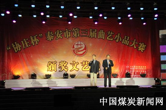 近日,由中共泰安市委宣传部、泰安市文学艺术界联合会主办、泰安市曲艺家协会、协庄煤矿承办的“协庄杯”泰安市第三届曲艺小品大赛颁奖晚会在协庄矿社区文化广场举行。中国煤矿体协副主席许金山、山东省煤矿工会主席刘宁出席了颁奖晚会。大赛自今年7月启动以来,得到全市各个团体会员单位的高度重视。广大曲艺家、曲艺工作者积极参与,共有全市各县市区推荐的60个节目参赛。参赛节目包括相声、评书、山东快书、小品、双簧、琴书、渔鼓等。最终,小品《生根》获得中青年组一等奖,汶河大鼓《看财奴》获得老年组一等奖,快板《我们是龙的传人,我们是中国娃》获少儿组一等奖。