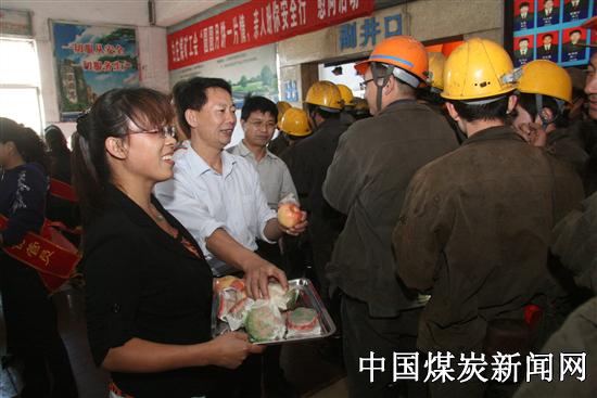 仲秋、国庆佳节之际,山东能源肥矿集团白庄矿工会组织女工家属协管员到井口开展了“圆圆月饼一片情 亲人盼你安全行”活动,慰问即将下井的一线员工,为他们送去了仲秋节和国庆节的祝福。在井口等候室,该矿领导和女工协管员们将象征团圆的月饼和香甜的苹果一一送到员工手中,希望一线员工一定要时时处处按章作业、正规操作,抓好节日期间安全生产,为全矿发展再做新贡献。